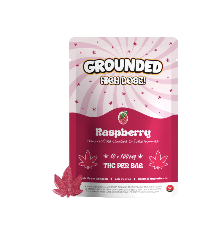 Grounded High Dose THC Edibles – 1000mg THC (10 x 100mg) – Raspberry