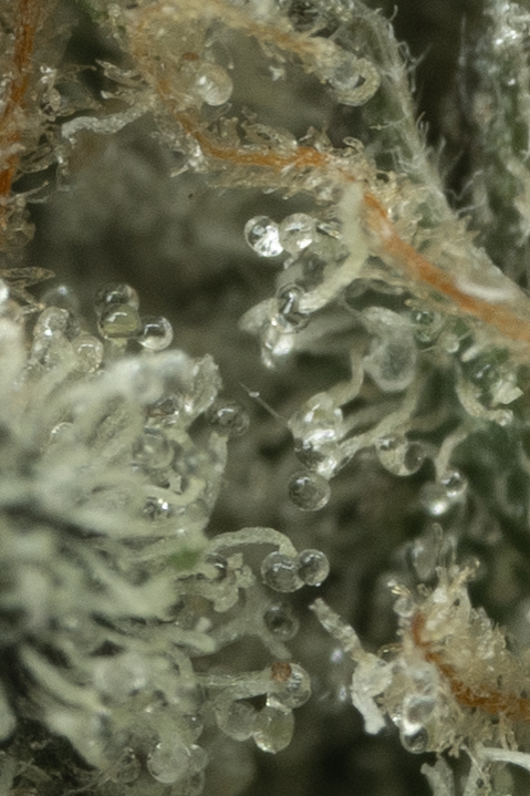 The Unicorn Poop strain is said to give off citrusy, diesel notes thanks to its parents, GMO and Sophisticated Lady. Sophisticated Lady is reportedly rare Ghost OG x Grateful Breath.  As for the name, it’s a nod to the color and shine of the nugs. When grown well, Unicorn Poop is a beauty, with a very distinct layer of trichomes that makes it shine.